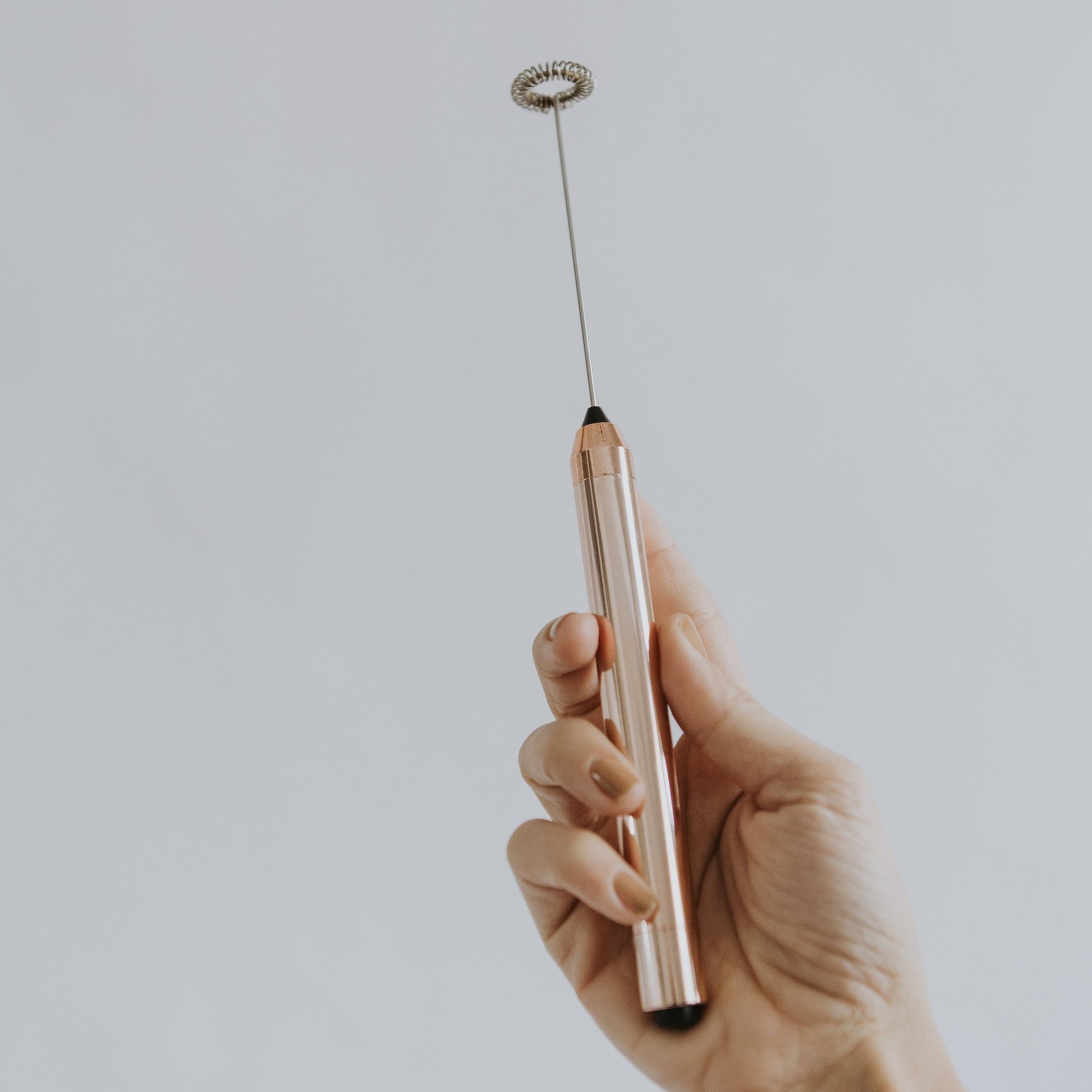 Blend your inner beauty products easily and effortlessly with the elegant AURA Rose Gold Frother!