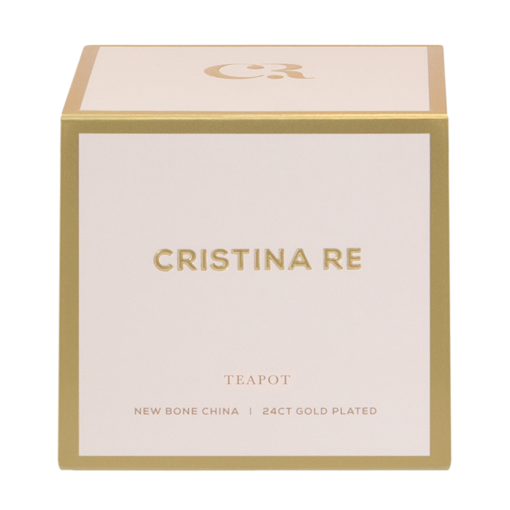 Experience High Tea in style handcrafted contemporary Two Cup Teapot by Australian Artist and Designer Cristina Re. Ethically crafted from vegan friendly premium new bone china and trimmed in luxurious 24 karat gold. Co-ordinate with an array of accessories from the Cristina Re Moderne Collection.