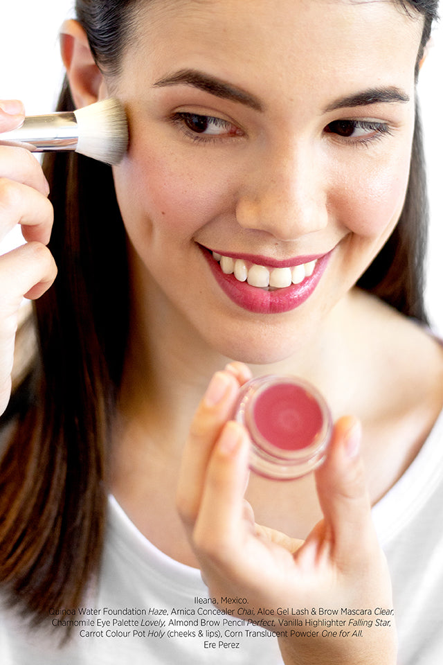 Colour cream blush in a pot in a rich grape shade. This vegan multitasking balm from Ere Perez adds instant colour to cheeks and lips, builds and blends easily. Features many healthy ingredients like carrots, full of antioxidants, considered helpful in keeping skin soft and hydrated. A small pot of goodness that fits in your pocket with a practical mirror lid for touch ups so you can lift your look anytime, anywhere. Available in 6 colours.