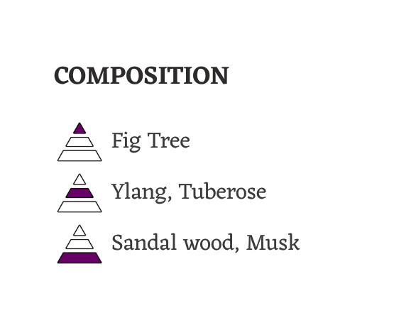 Tazarine means fig tree in the Berber language. Tazarine is a very fresh, elegant and floral scent, evoking a summer breeze embalmed by fragrances of a fig tree and a field of ripe wheat, ready for harvest.
